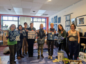 I teach classes at Mystic Open Studio, an artist collective in Arlington, MA. I hold a monthly “Community Vat” where I provide an indigo vat and cover the basics of shibori and where more experienced folks can bring projects in to dye. I also periodically teach workshops on more advanced techniques such as stitched shibori.