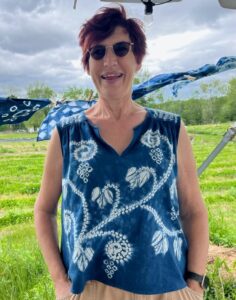 If you had told me nearly 3 years ago when I retired that I would be regularly creating and teaching Shibori, and even occasionally exhibiting and selling it, I would have been astonished. I hadn’t even heard of Shibori before I took my first class in October 2023. I was immediately hooked, and quickly moved beyond the simple folding and binding techniques covered in the class to focus on stitching techniques, reflecting my long-time love of sewing.
